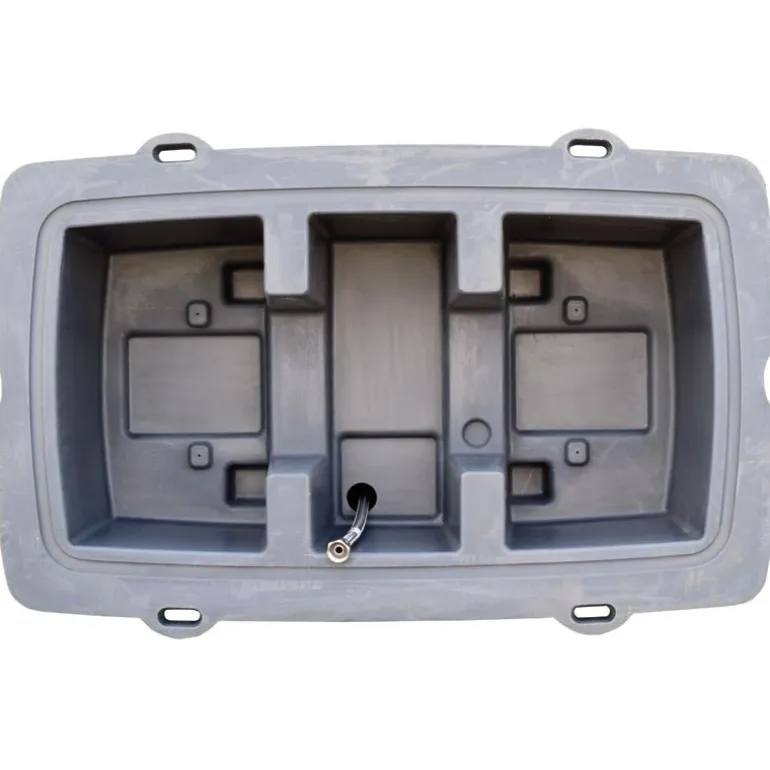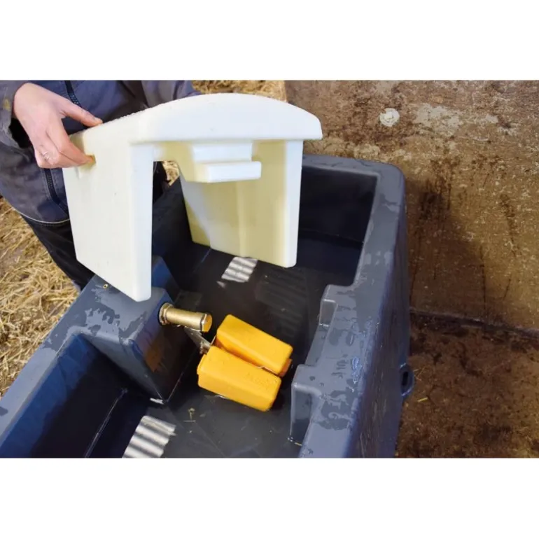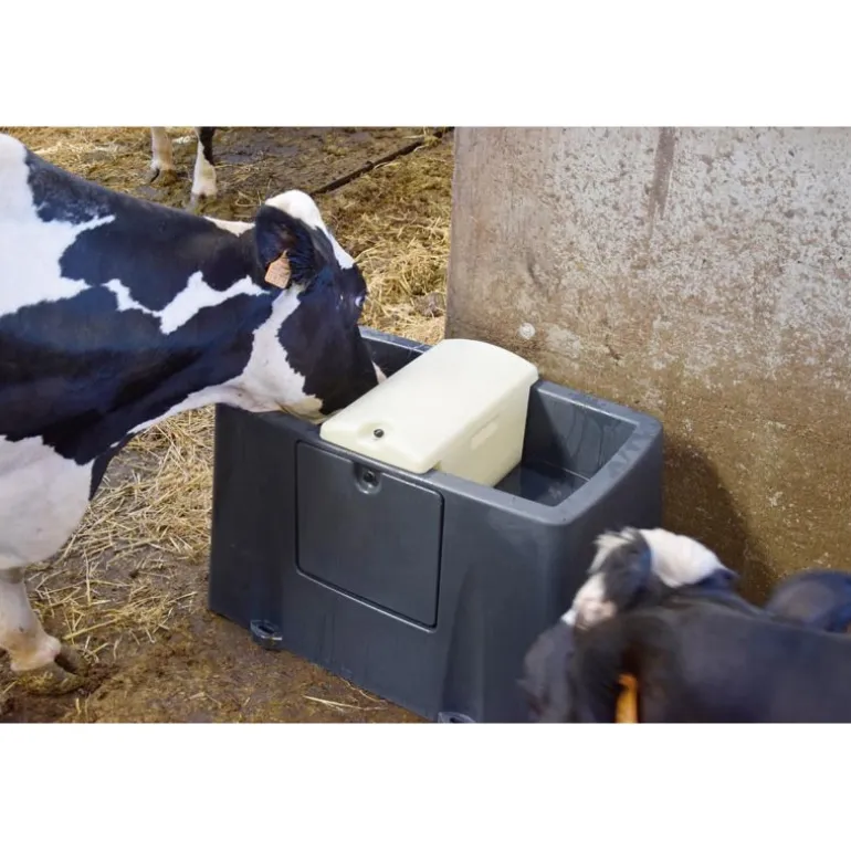 Abreuvoir en résine de polyéthylène à niveau constant. Bac monocuve avec légère pente pour favoriser la vidange et le nettoyage.