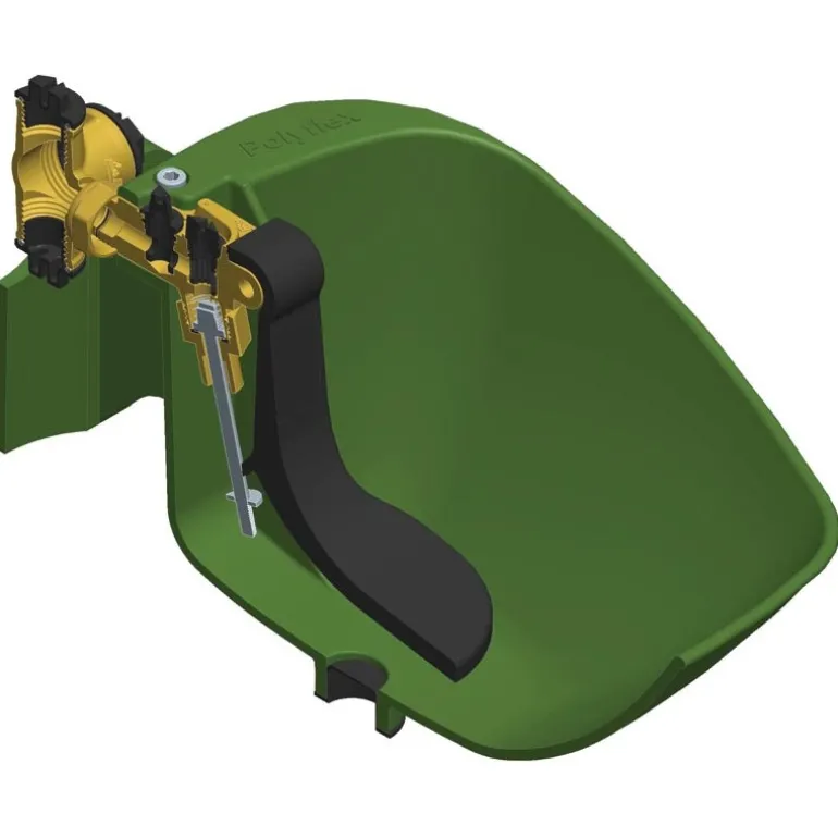 Le Polyflex est un abreuvoir à poussoir conçu avec un bol souple en polypropylène injecté. Il est étudié pour une déformation du bol au contact des animaux, limitant ainsi des casses dues aux frottements répétés.