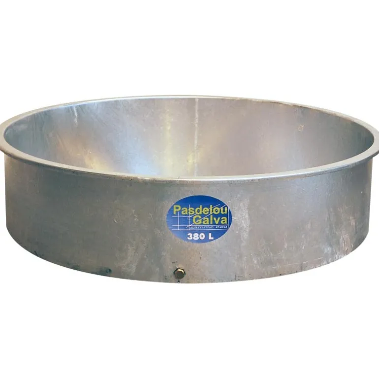 Bacs de pâturage, fabriqués en tôle d’épaisseur 20/10ème, galvanisés à chaud avec rebord extérieur retombant et bouchon de vidange Ø 15/21 mm