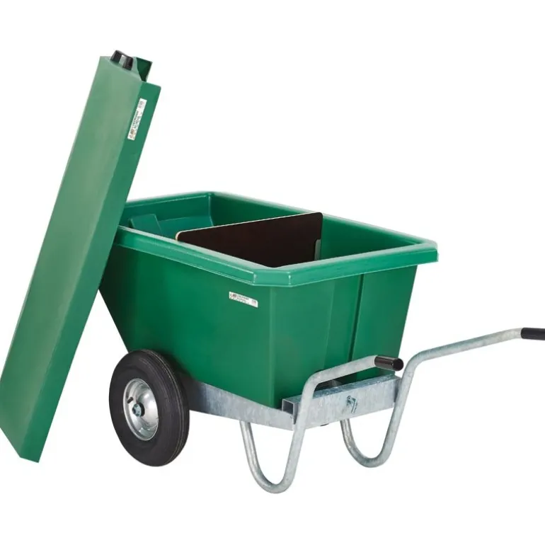 Cette brouette à aliments avec cuve basculante, châssis galvanisé et couvercle à glissière d’origine est un outil idéal et polyvalent pour le transport d’aliments avec ou sans compartiment, même dans les terrains difficiles. Elle est équipée d’un mécanisme anti-basculement de cuve.