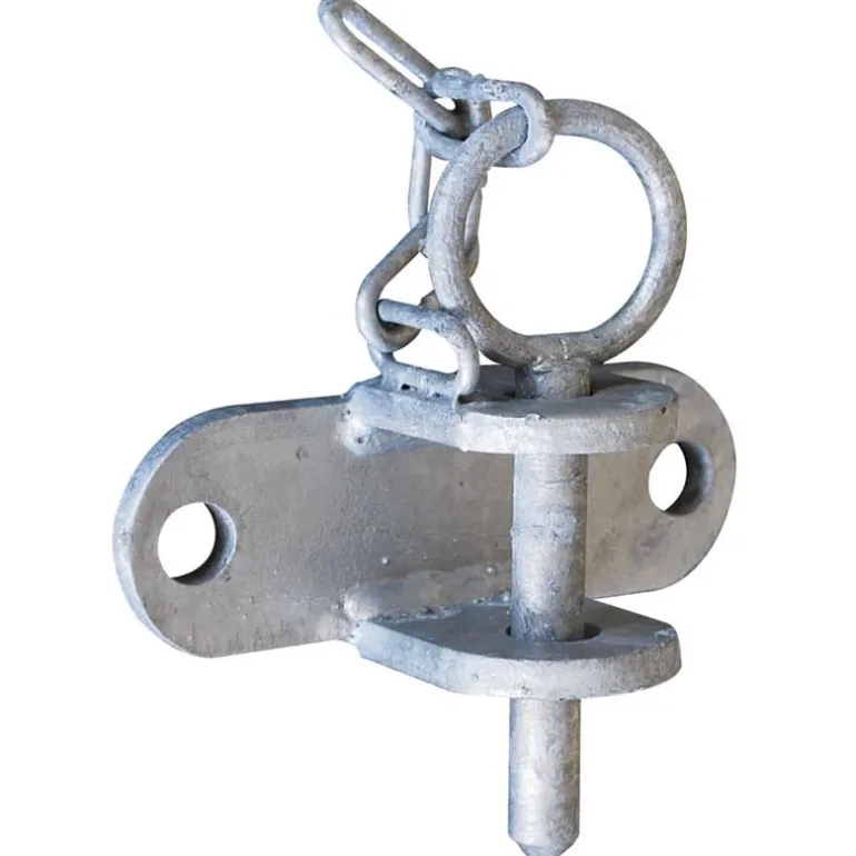 Fixée à l’arrière des chariots 4 roues, elle permet de relier 2 chariots de transport entre eux par l’intermédiaire d’une flèche d’attelage à trou.