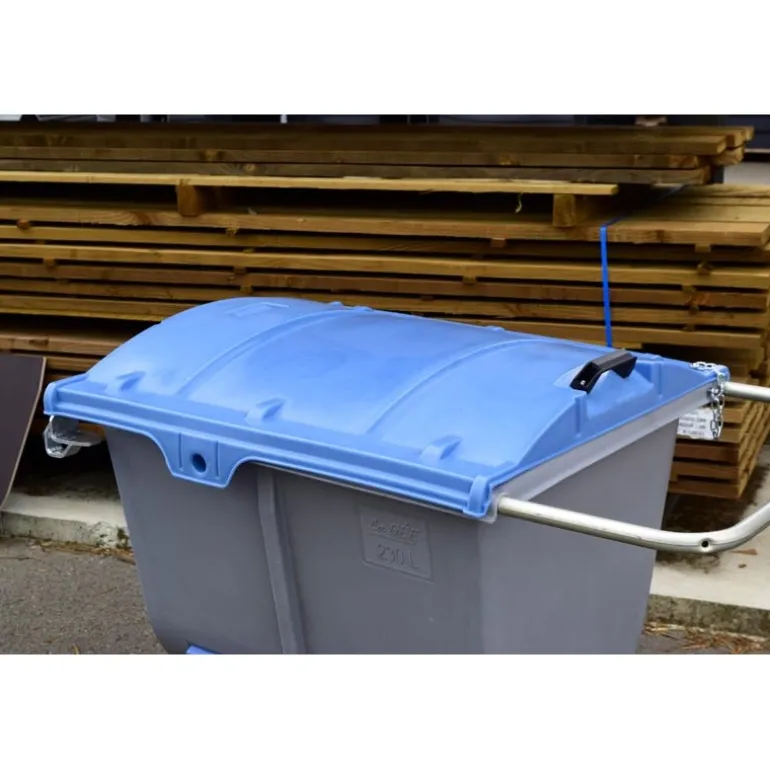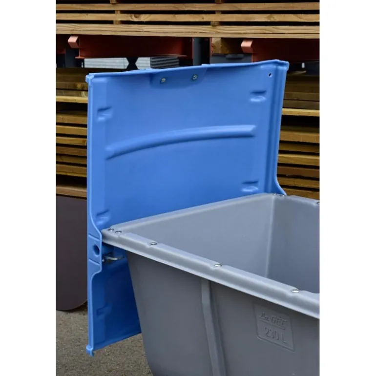 Couvercle prévu pour le chariot Pro-feed. Il est équipé d’un verrouillage pour protéger l’aliment des animaux, rongeurs….