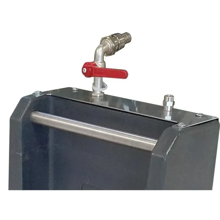 – Robinet d’arrivée d’eau avec embout à visser 15/21 pour tuyau Ø 19 mm, monté sur un carter inox.