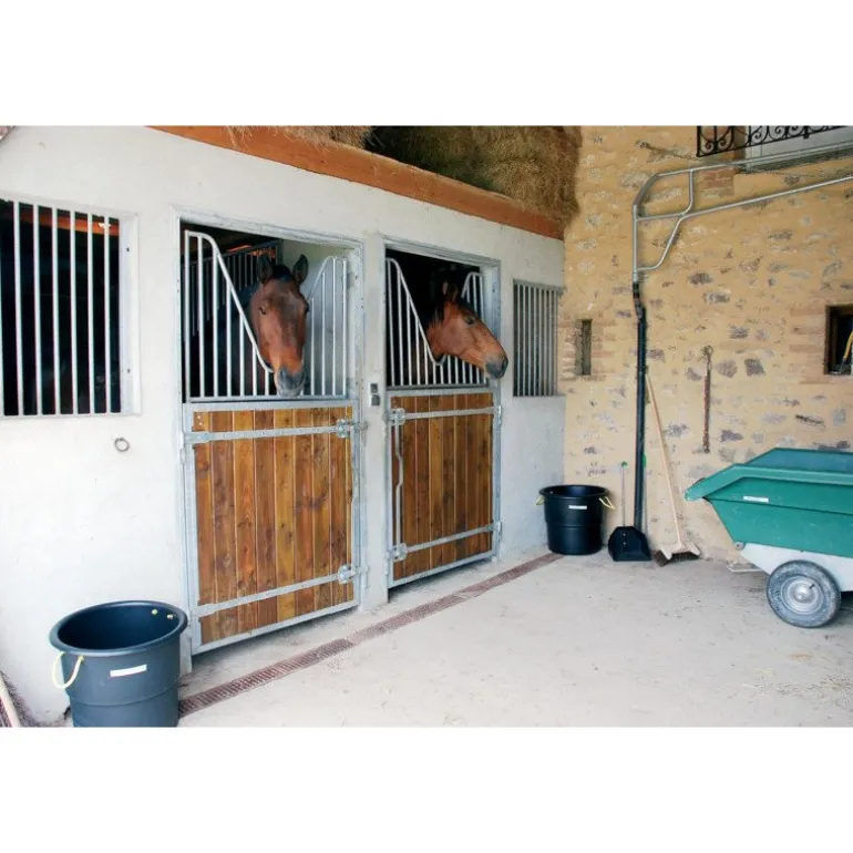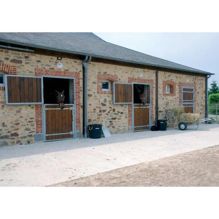 – un battant haut avec pentures soudées sur le cadre et équipé de deux verrous d’écurie cadenassables.