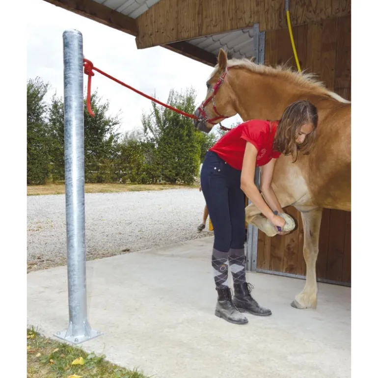 Anneau de maintien soudé pour le passage du mousqueton de la longe. Platine 20×20 cm avec goussets de renfort.