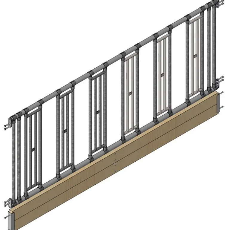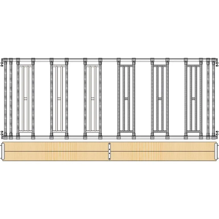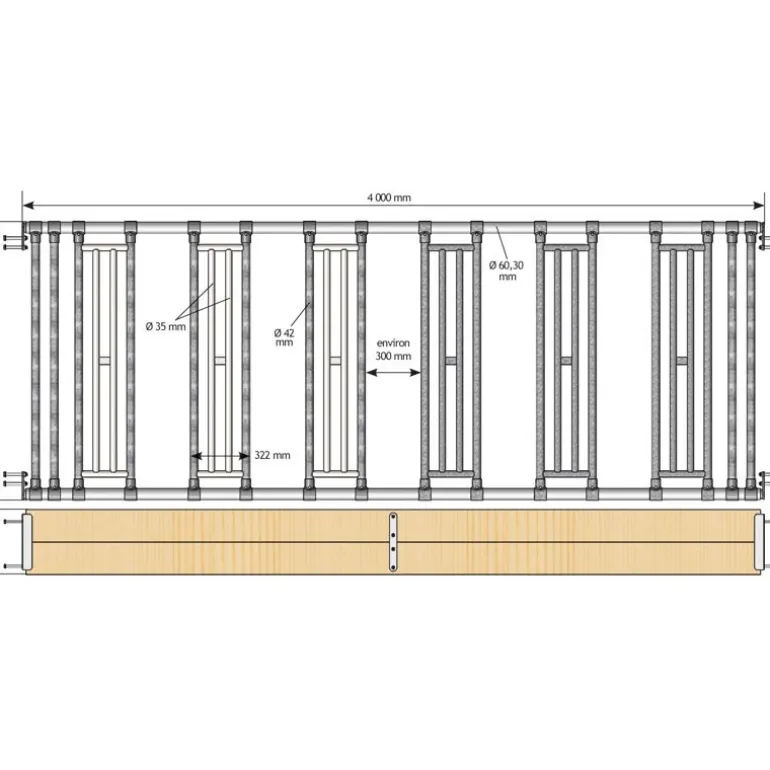 Ce kit permet la distribution en libre-service du fourrage à vos chevaux. Des fermetures tubulaires fixées entre deux tubes horizontaux créent des zones d’accès au fourrage.