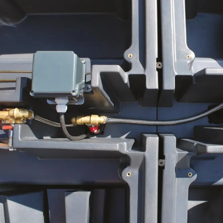 Dans sa version d’origine, il est efficace jusqu’à -30° et sur des températures plus basses avec l’option thermoplongeur. Un local technique interne permet un raccordement à l’eau avec aisance et l’ajout de l’option chauffante et d’une vanne de coupure générale. Une clé de blocage isotherme orientable permet le passage des réseaux, le raccordement et la liaison de deux bacs ainsi couplés entre eux, tout en conservant les performances thermiques.