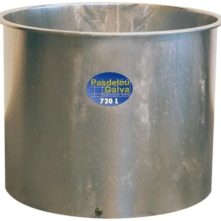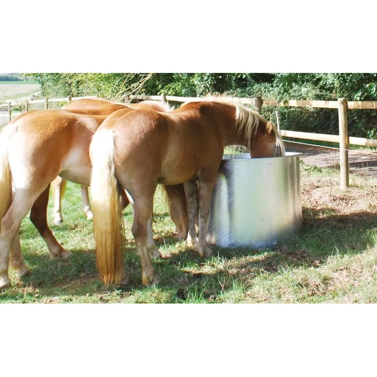 Bacs de pâturage, fabriqués en tôle d’épaisseur 20/10ème, galvanisés à chaud avec rebord extérieur retombant et bouchon de vidange Ø 15/21 mm