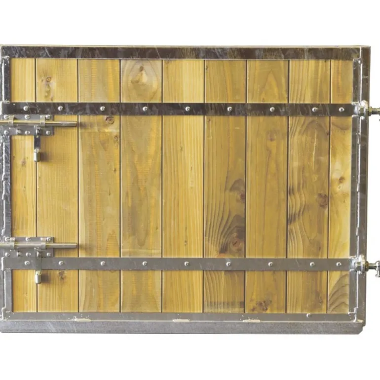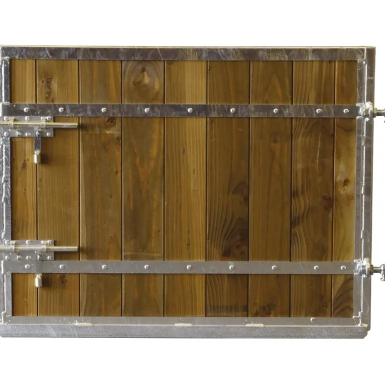Pose sans huisserie : prévoir 2 gâches pour verrous d’écurie (P1235704) et 1 paire de gonds (P1235701 ou P1235702).