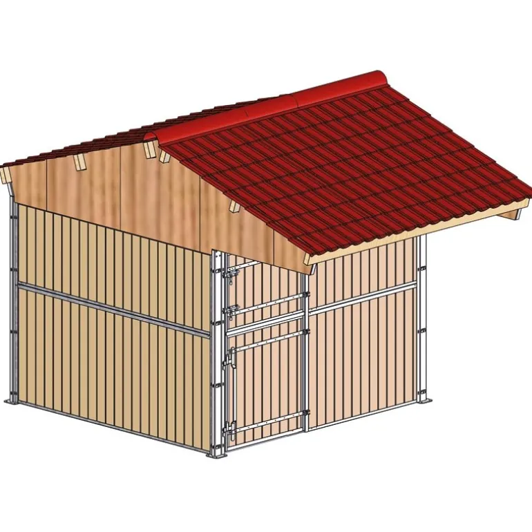 Le box à toiture double pente se compose des mêmes éléments que l’abri :