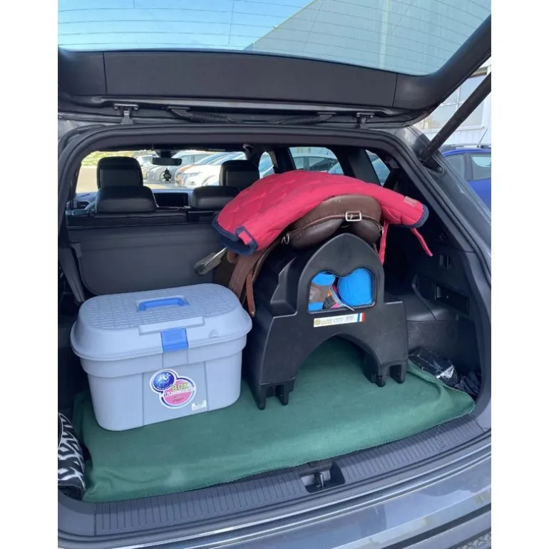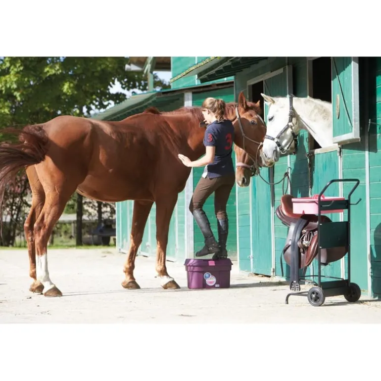 En plus de ranger son matériel, elle permet au cavalier de s’en servir comme d’un montoir pour faciliter l’accès aux soins du cheval.