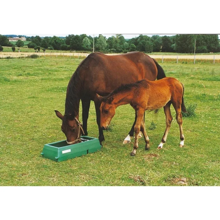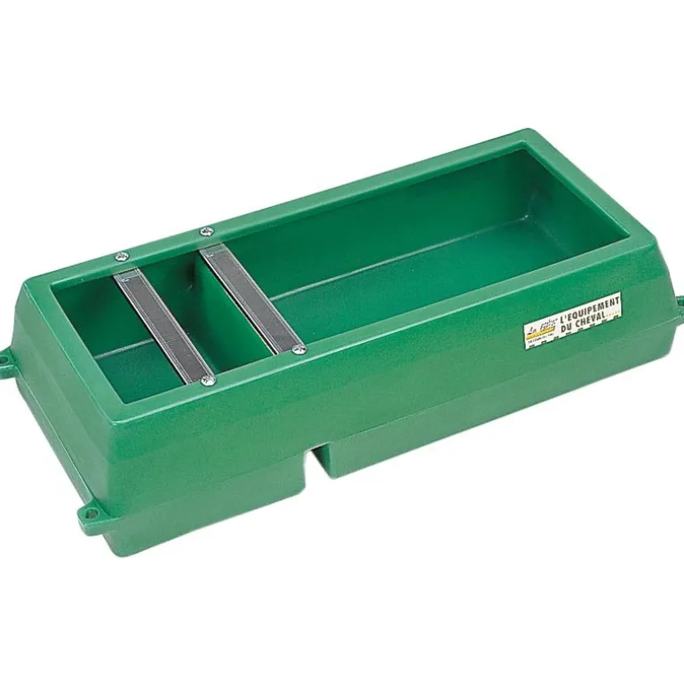 La mangeoire est fournie avec deux barres sélectives à positionner en fonction de l’embouchure de la jument afin de l’empêcher de manger la ration du poulain.