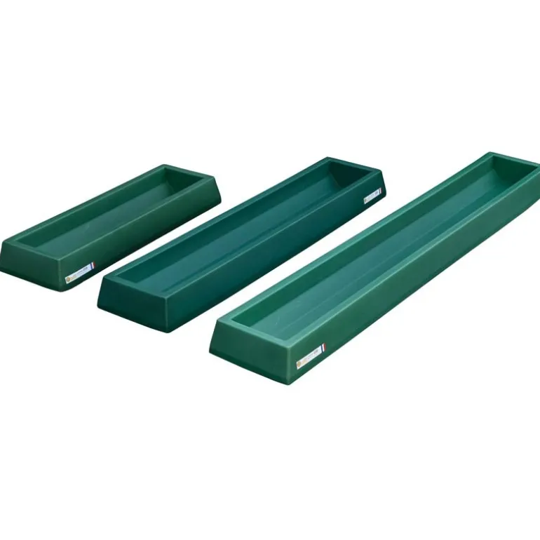 Les mangeoires linéaires polyvalentes reposent directement sur le sol et sont idéales pour alimenter les petits animaux.