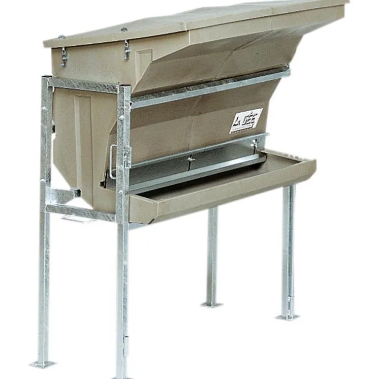Nourrisseur avec réserve munie d’une trappe de réglage du débit.