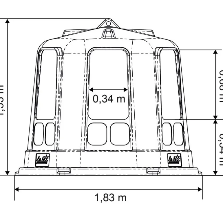 Lors du remplissage des RPE avec fond, la cloche est soulevée et le fond reste au sol. Ils sont percés de 6 trous de fixations permettant l’ancrage au sol du râtelier par des pitons et évitant son déplacement lors de l’alimentation des animaux. Leurs parties supérieures sont équipées d’un anneau de levage de diamètre 40 mm et de formes de renfort. Les fonds et les passages sont prévus avec écoulement d’eau. Passage de tête renforcé par un rebord en polyéthylène non blessant. Ils sont très sécurisants pour les troupeaux.