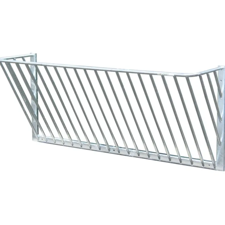 Ces râteliers métalliques sont galvanisés à chaud après fabrication. Leurs tubes verticaux sont manchonnés dans leur cadre. Ils sont extrêmement robustes et offrent un espacement entre barreaux de 80 mm facilitant ainsi l’extraction du foin.
