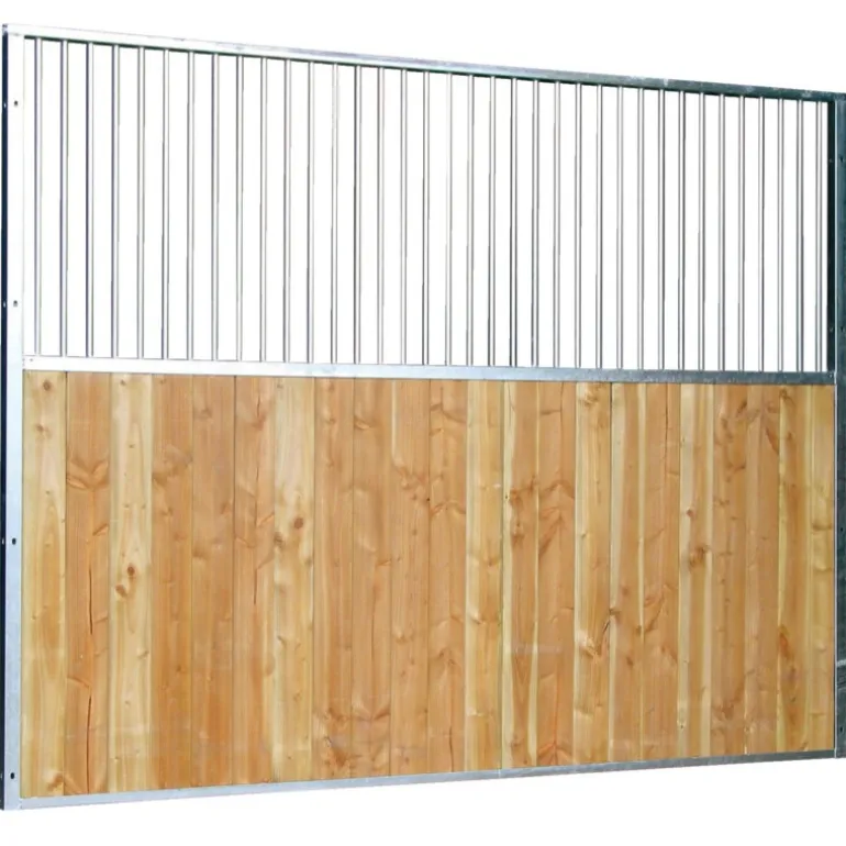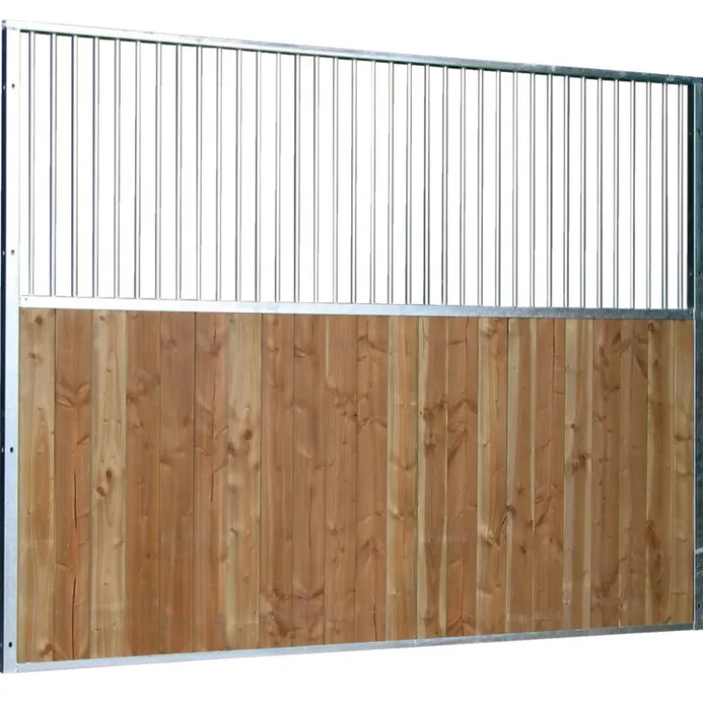 La partie haute barreaudée est réalisée avec un barreaudage Ø 21,3 mm, soudé avec un espacement de 60 mm maximum, ce qui correspond aux normes des Haras Nationaux.