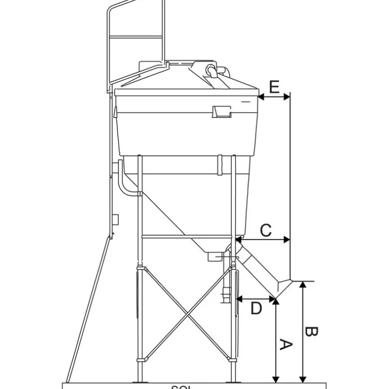 Silo livré prémonté, coque monobloc posée dans son châssis, seuls restent à fixer les éléments livrés en kit, soit 4 manchons de pieds, garde-corps, crinoline d’échelle et trappe inox Ø 200 mm. Ceci facilite son installation dans le respect des normes en vigueur. Livré sans réhausse pour silo et sans tuyau de remplissage.